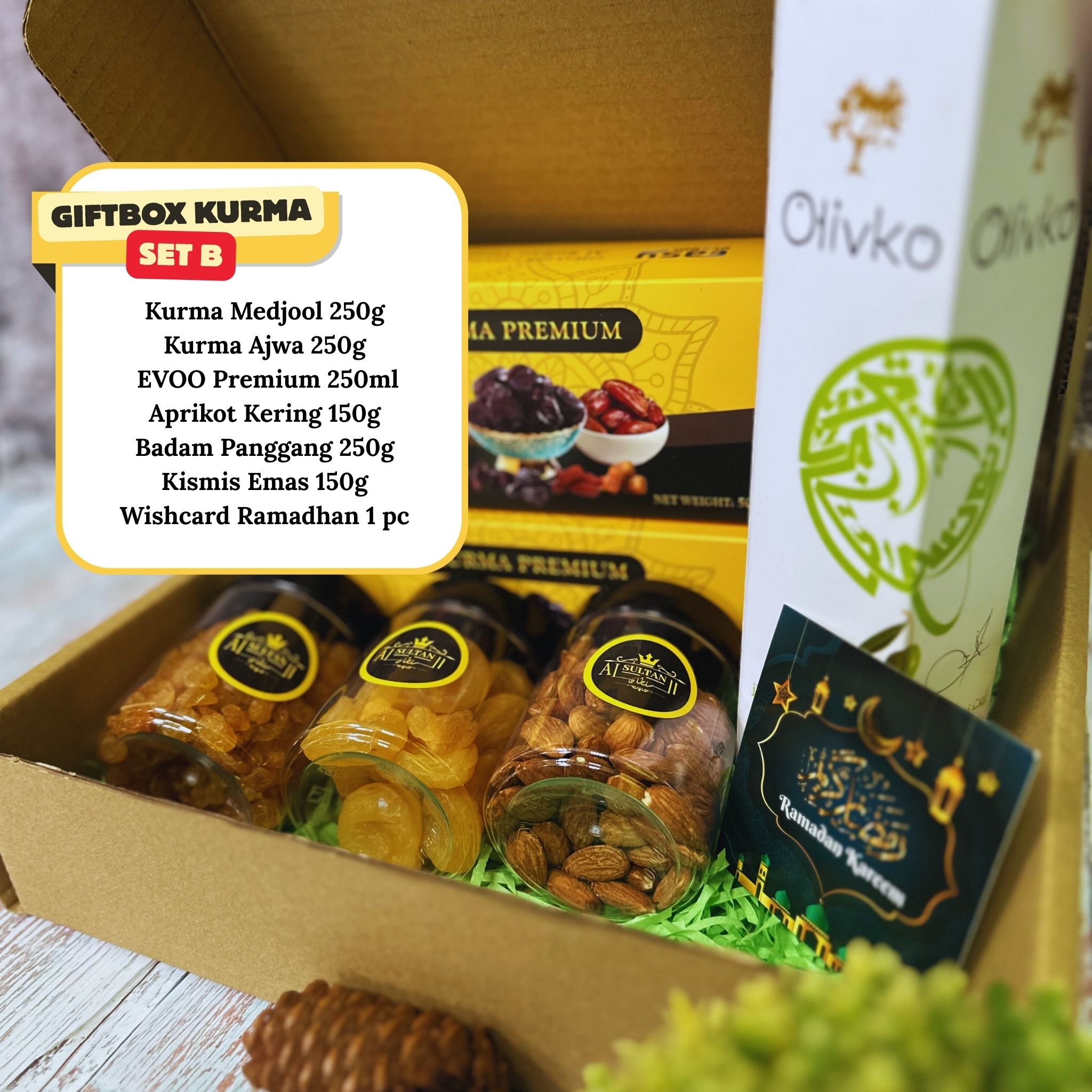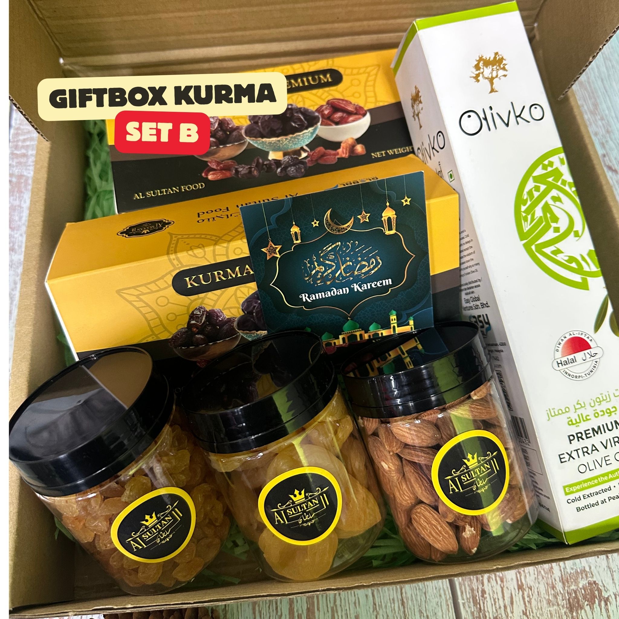 AlSultan Food Giftbox Kurma ialah set hadiah kurma premium yang dipilih rapi dan dibungkus eksklusif, sesuai dijadikan hadiah Ramadan, majlis keraian, kenduri, hadiah korporat dan buah tangan istimewa. Menampilkan kurma berkualiti tinggi dengan pembungkusan elegan yang melambangkan keikhlasan dan penghargaan.