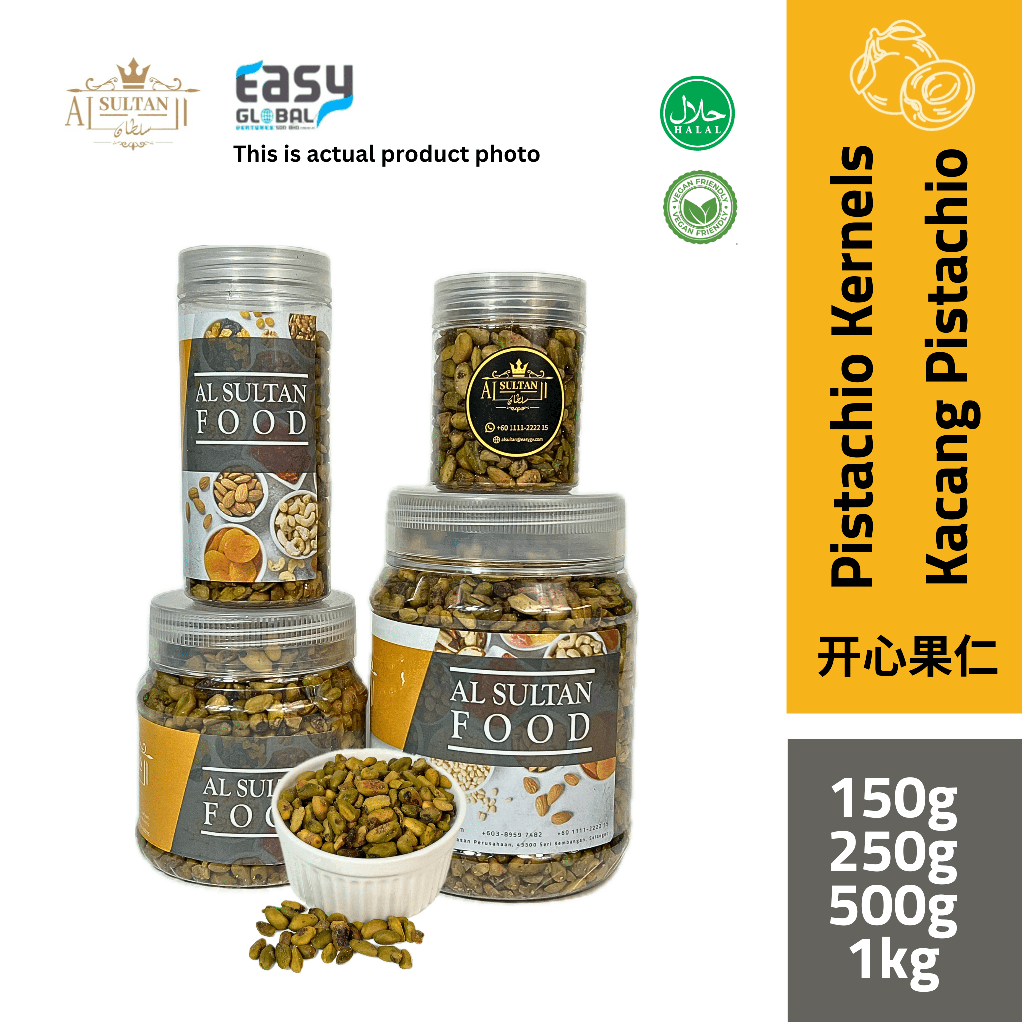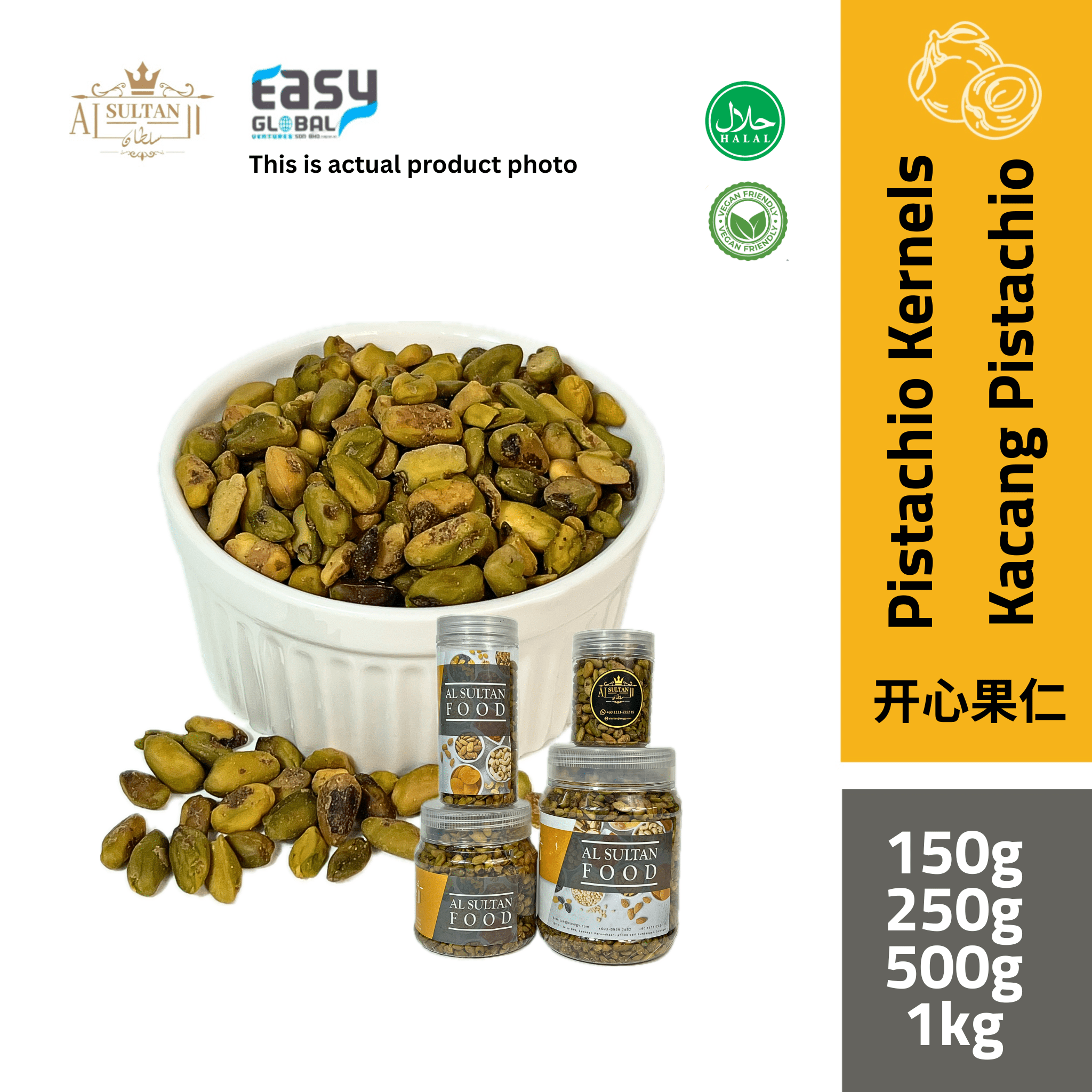 Kacang Pistachio Alsultan Food adalah jenis mentah tanpa kulit ini . Ia mempunyai kualiti terbaik dan kacang yang lebih enak antara lain. Ia diimport dari Amerika Syarikat. Kami member jaminan bahawa kacang ini adalah bersih, halal dan suci tanpa bahan kimia atau perasa tambahan.